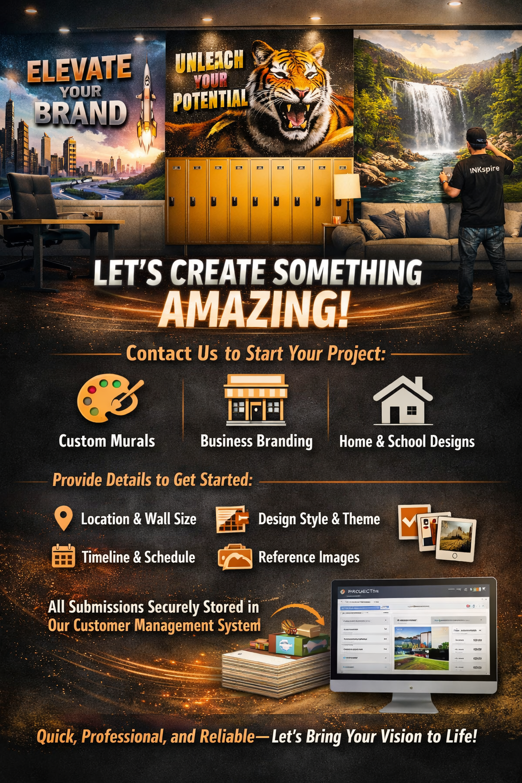 Have a project in mind? Reach out to INKspire to bring your vision to life. Whether you're interested in custom wall murals, business branding, school graphics, or residential designs, we’re here to help you create something impactful and unique.